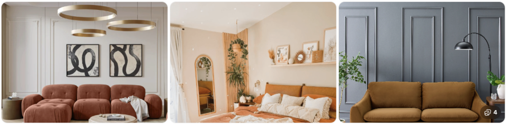 Terracotta, burnt sienna, and warm ochre are leading the palette this year — but in refined spaces, these tones are never flat. They are layered through plaster walls, velvet upholstery, natural stone, and wide-plank oak flooring.